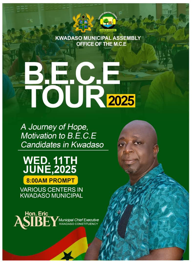 The municipal chief executive of Kwadaso ,hon Eric Asibey has urged all 2025 BECE candidates to refrain from examination malpractice and embrace honesty and integrity, emphasizing that these values are crucial to achieving success in life.