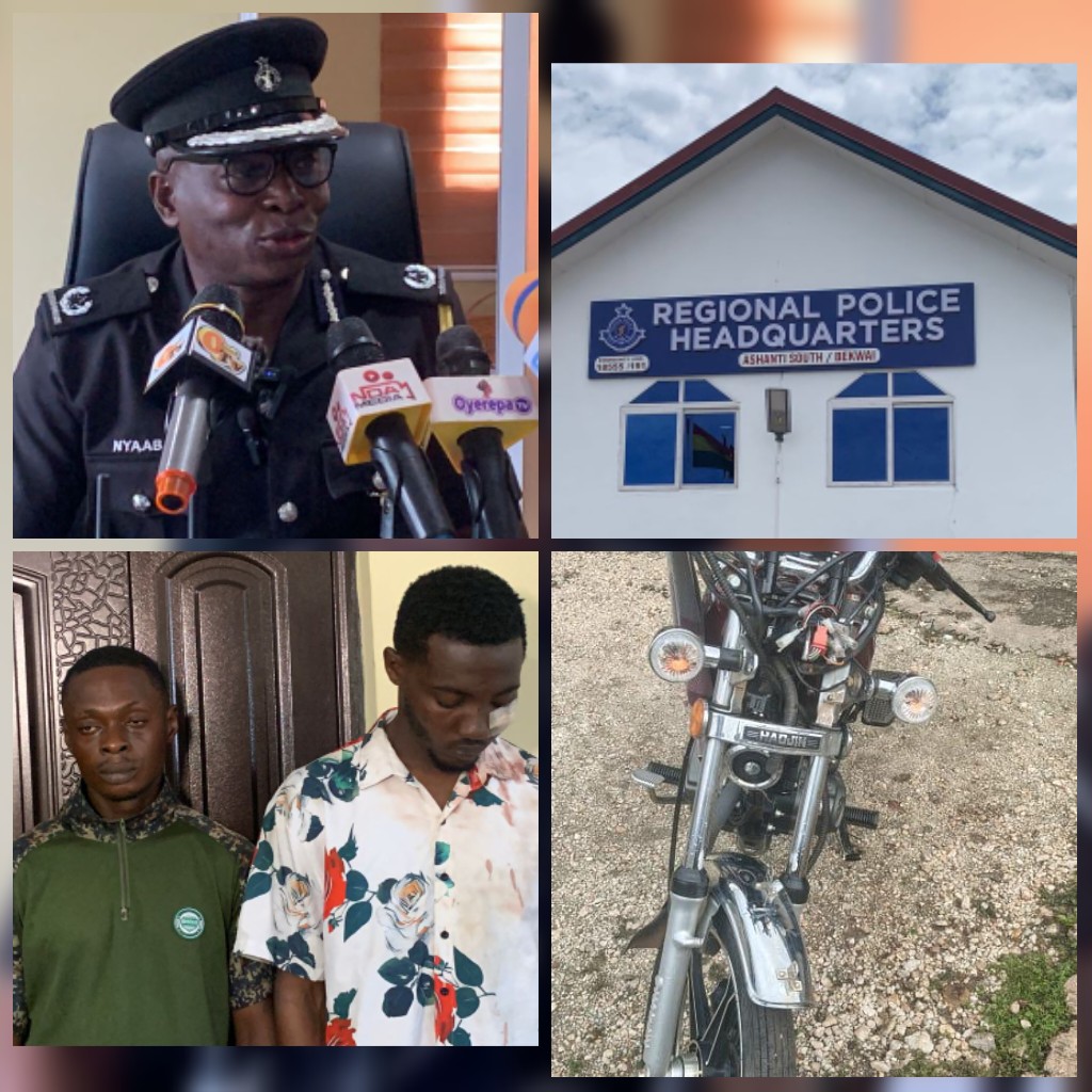 Further investigations led officers to Kokotesua, another suburb of Obuasi, where Collins Aboagye, the second suspect, was apprehended. Both men have confessed to the crime, and the stolen motorbike has since been retrieved.